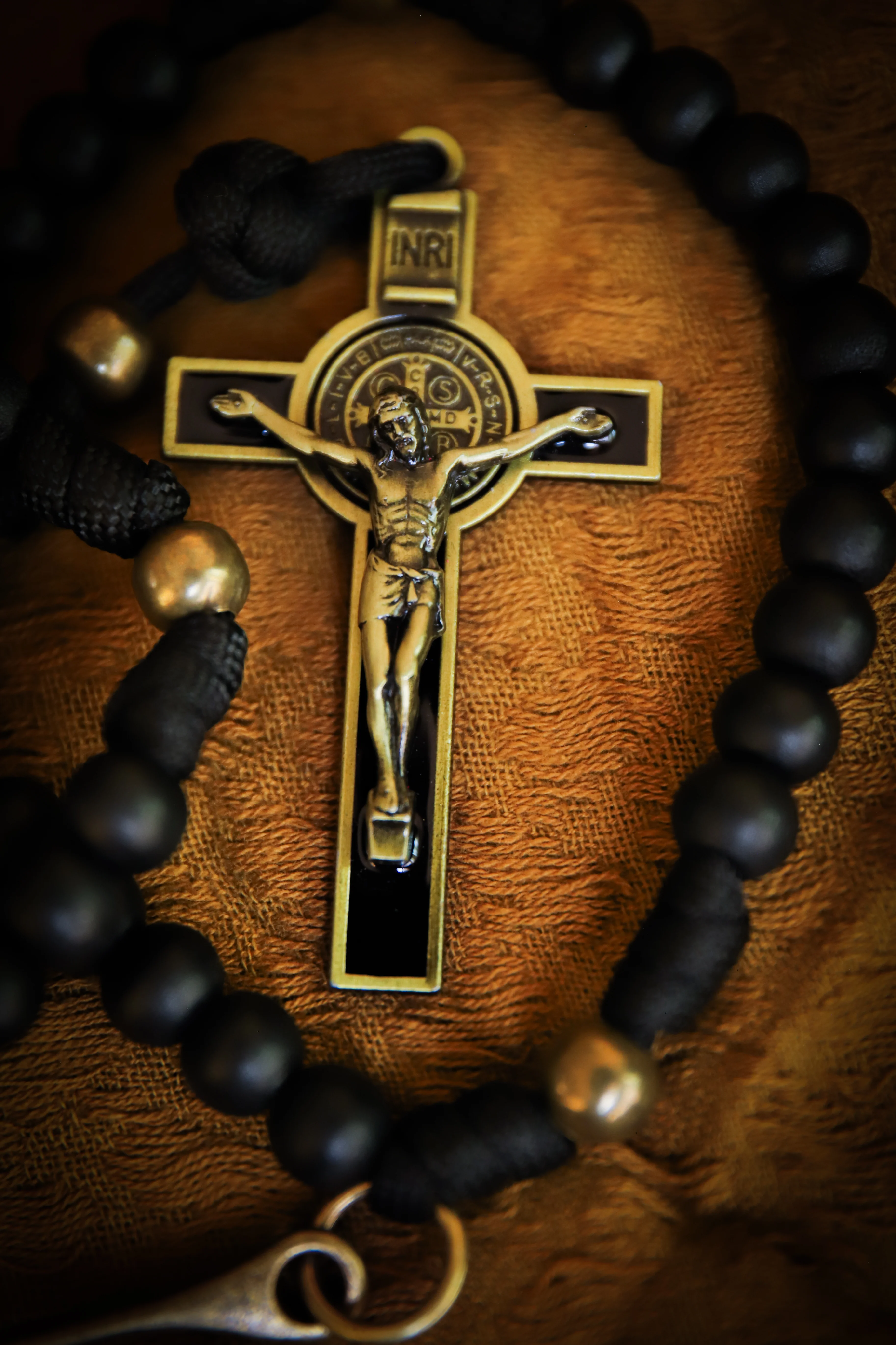 St. Benedict Belt Rosary - Black Wood and Brass